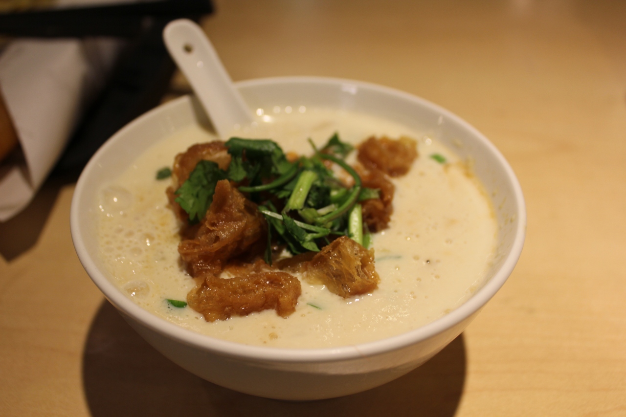 知人から「スナップエンドウのスープと過橋麺が定番!」と勧められ行ってみました。豆のスープは勝手にポタージュのようなものを想像していたので、透き通ったスープに鮮やかな緑色の豆がたくさん浮かんでいてイメージとの違いに少し驚きましたが、あっさりしていておいしかったです。写真を撮っていると、鞘に入ったものを持ってきて見せてくれたり、観光客の扱いも慣れている様子でした。過橋麺はテーブルでおばちゃんが作ってくれます。こちらもあっさり。店内はモダンな雰囲気なので、ゆっくり食事を楽しめます。