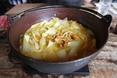東恋路店に行ったら大混雑だったので、同じ支店のこちらに行ってみました。本来のほうとうは、お肉が入らず野菜のみだそうで、こちらのお店のほうとうは一種類だけ。楽しみにして行ったのですが、かぼちゃが煮崩れていて、見た目がカレーうどんのようでした。邪道かもしれませんが、私はお肉が入っているほうが好みです。