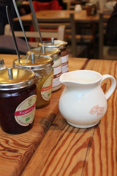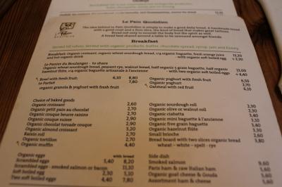 オーガニックのパン屋さん。日曜日の朝、サブロン広場のアンティーク市に行く前に朝食を食べに行きました。テーブルにはジャムやチョコスプレッドの瓶が並び、食べ比べましたが、どれもおいしかったです。ケーキ類もおいしそうでしたが、さすがに食べられず。違う時間にも行ってみたかったです。