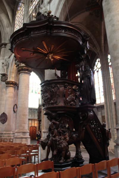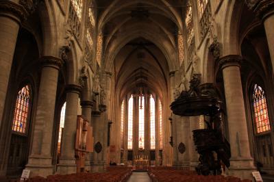 サブロン広場で目をひく大きな教会。観光客の姿は少なく、静かで落ち着ける空間です。外観も素敵ですが、内部のステンドグラスがとても綺麗で、説教台の彫刻も美しいです。サブロン広場には有名なチョコレートショップも多いので、近くに行くようでしたらぜひ立ち寄ってみてください。