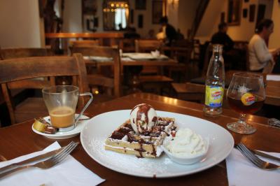 ブリュッセルで行きたかったワッフル屋さん。実は日本にも支店があるのですが、やっぱり本場で食べてみたかったのです。日本人客も何組かいて、メニューにはなんと日本語もありました! 日曜日の夕方に行きましたが、かなり混雑していてウエイトレスの女の子は要領が悪く、済んだテーブルの片づけが間に合わないくらいてんてこまい。世界的な観光地だから、仕方ないのかな。