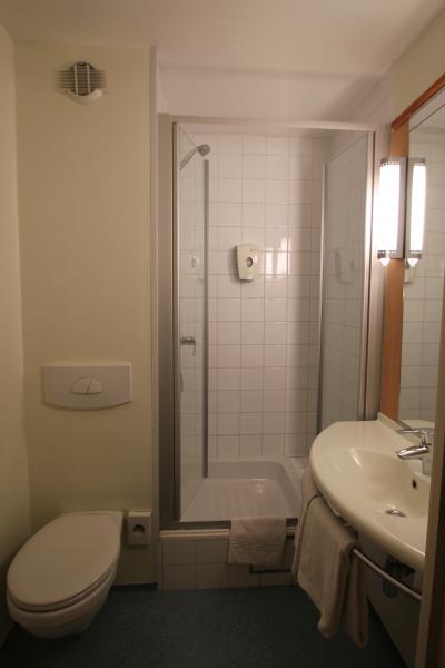部屋は質素なつくりで、バスルームはシャワーのみ。