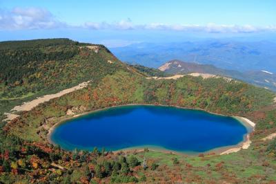 山頂からの眺めは山肌を覆う一面の紅葉、反対側は荒々しい噴火口の姿と違った風景を見ることができ、磐梯山や五色沼湖沼群など遠くの山々も眺められ抜群の眺望です。