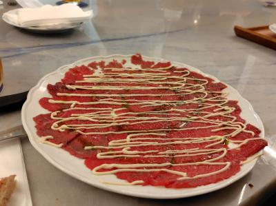 名物のタタラーク(ステーキタルタル)は、パンにニンニクをすり込み、タルタルをのせていただきます。癖が無くて美味しい。