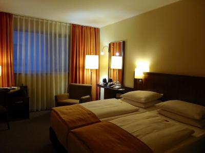 2009年12月に3泊しました。エールフランスでパリでトランジットしてミュンヘンに入りました。大雪のため、パリからのフライトが大幅に遅れたため到着が深夜3時頃になってしまいました。とても心配だったのでパリの空港からホテルに到着時間が遅れることを伝えたところ、お部屋はちゃんとキープされており、まったく問題なかったです。部屋は大変広く、清潔で快適で、中庭に面した部屋でした。3日間快適に過ごすことが出来ました。朝食も充実していて満足のいくものでした。滞在中はレンタカーを2日間借りたのですが、ホテルの地下の駐車場に停めておくことも出来ましたし(有料ですが、宿泊者は1泊20ユーロくらいでした)、駅にも直結しているので、電車での移動も非常に便利だと思います。