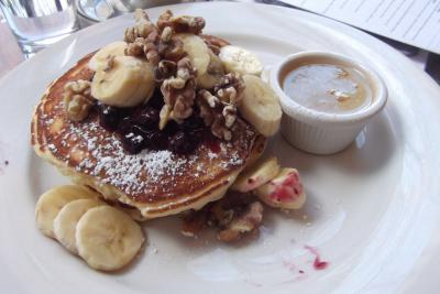 アメリカのパンケーキは、ソースがどばっとかかっていて美味しくないので…。