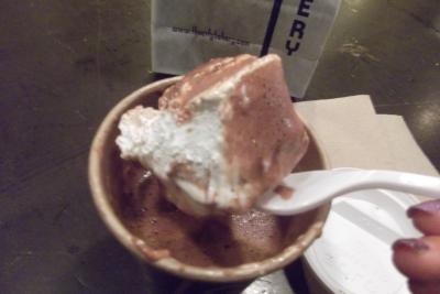 ホットチョコレートはマシュマロが入っていて激甘です。