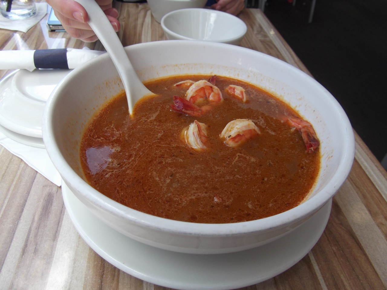 ビーチンシュリンプはえびも大きめでスープも日本で味わえないようなバジルのきいた変わった味付けでおいしかったです。