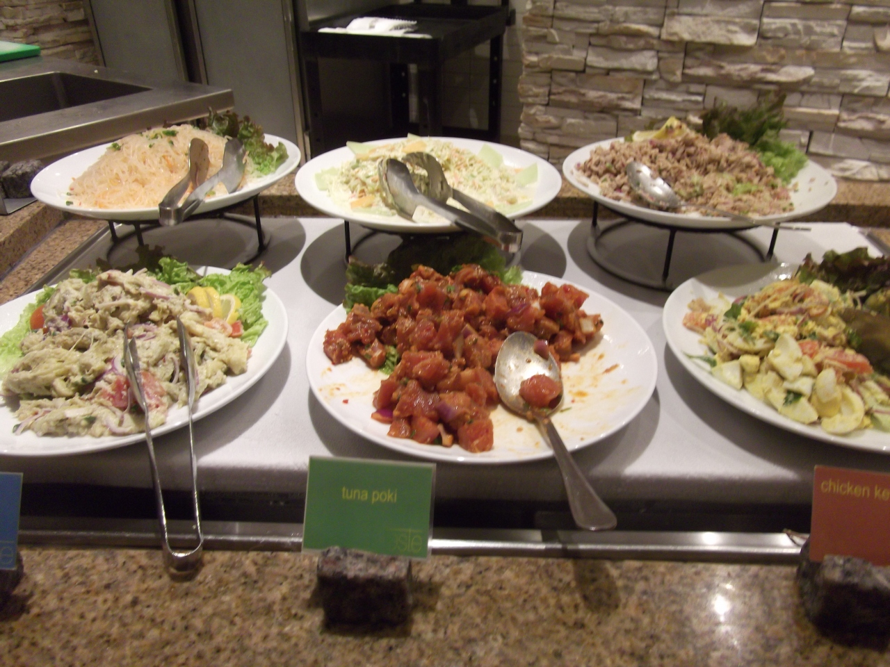 ビュッフェも、サラダからポキ、春雨、ポテトサラダ、お肉からシーフードまでたくさん