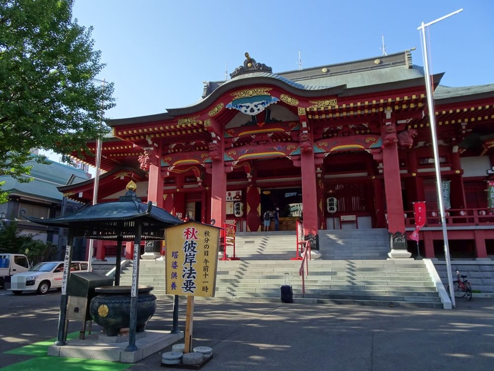 建物は木造ですね。朱色が際立ちます。山門がなく道路から本堂がすぐです。