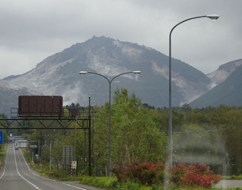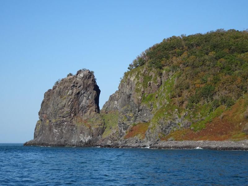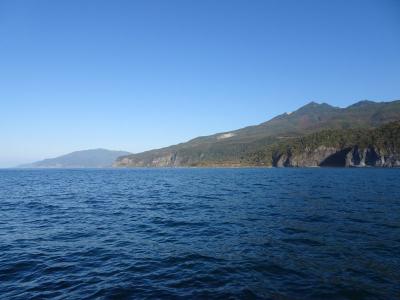 クルーズ船から半島を見ると、木々がない山が見えるので、すぐ硫黄山とわかりました。煙が出ていないのでとても活火山には見えません。