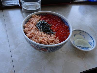 イクラとサーモンのフレークの2色丼を注文、1800円。