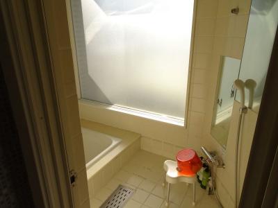 浴室の窓は曇りガラスでした。ガラスにブラインドの留め具が残っていたので、以前はブラインドの類があったのでしょう。錆びが出ていたので外した方が良いでしょう。