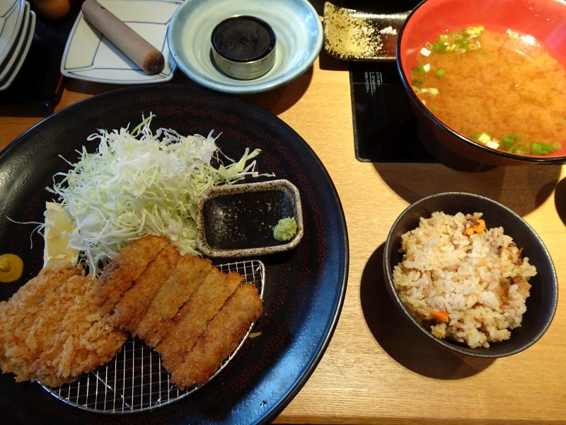 トンカツ単品だと大きいので、牛カツの値段が量に影響を与えているのでしょう。