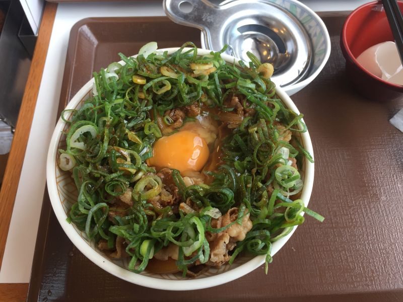 さっぱりとネギがたくさん載った牛丼を注文。ネギと牛丼あいますね。(思ったほどさっぱりじゃなかったけど)- 旅行時期