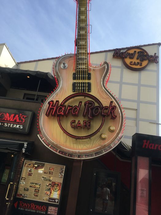 店前のギターの押しが強いハードロックカフェ。世界中にありますね。