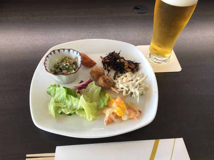 午前の便のために、スイートラウンジを利用しました。朝食代わりにお腹にたまる食べ物が欲しかったのですが、係りの人に聞くと ハンバーガー・パスタ等は11時からとのこと。