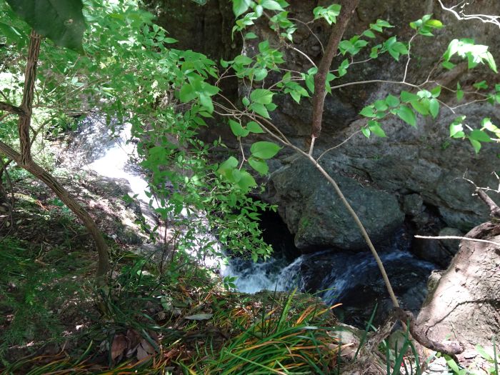 水が滝つぼに落ちる際は見えますが、場所を移動しても、その下はどうしても見えない。
