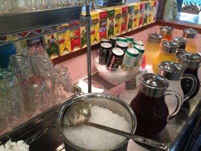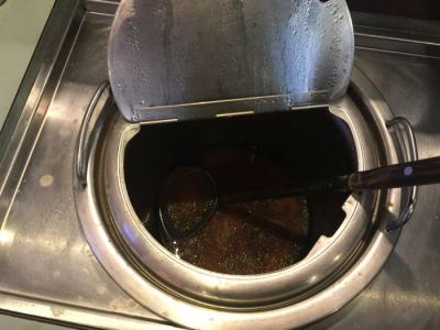 セルフサービスのスープを取りに行くと、スープポットはほとんど空。