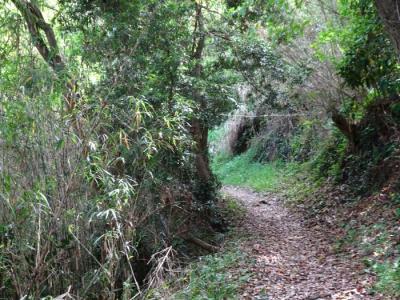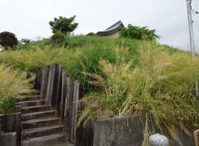 遊歩道に続く階段には雑草が生い茂っており、メンテされている雰囲気はありません。