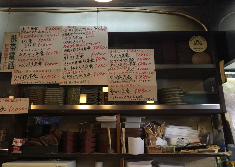テーブル3つの「昭和の食堂」という感じの店でした。壁には色紙がいくつか貼ってあるので、TVでも紹介されているようです。