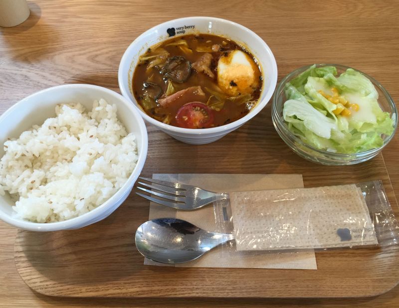 スープ+ライスorパン+サラダのセットを頼みました。スープはカレーを頼んだので、tまり、カレーライスですね。カレーは、適度にスパイスが効いて、美味しかったです。