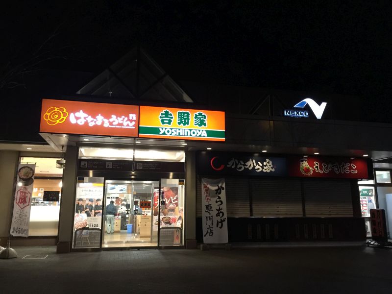 夜、高速を走っているときに、食事をするところ探していて、辿り着いたPAです。