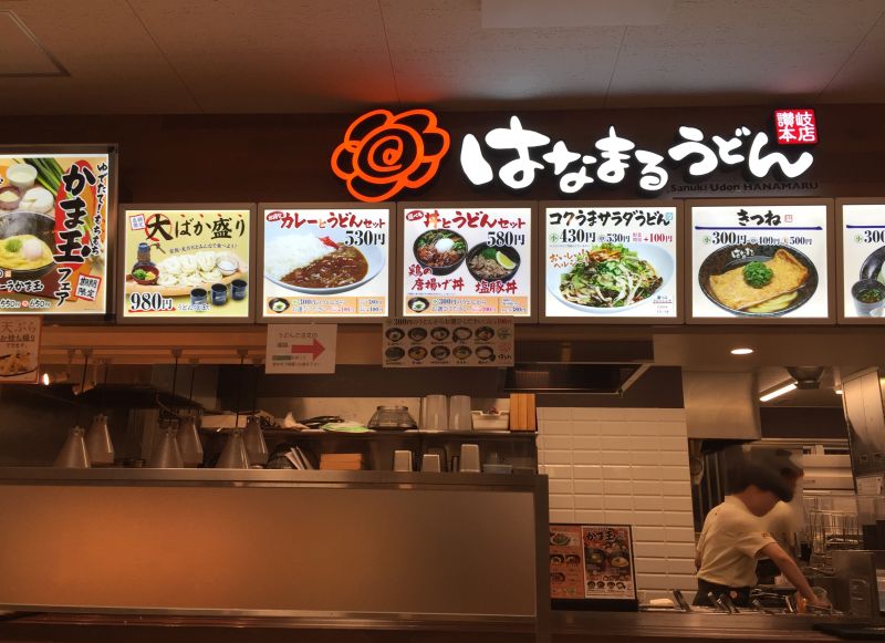 パーキングエリアにある「はなまるうどん」吉野屋、マクドナルドとの併設です。