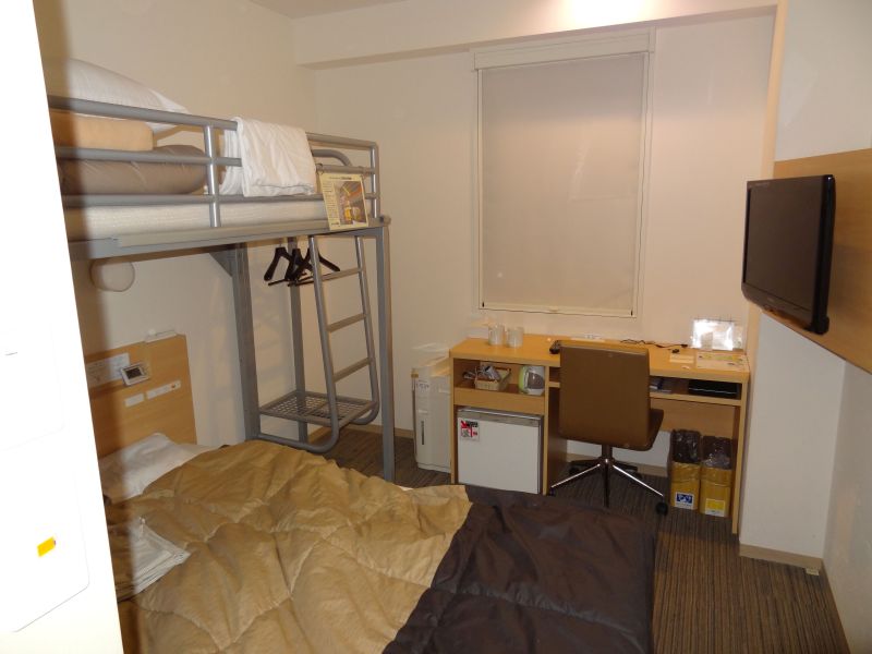 前泊用のために、何度も東横イン・ホームページで探すものの、ずーっと満室。数日目にようやく空きが出たので予約しました。但し、ミニダブルという12m2の部屋。