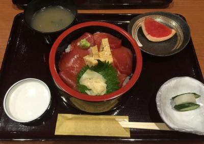 でも、価格はめちゃ安。マグロ丼500円(税込)、他も安い。味噌汁とトマトが付いてました。