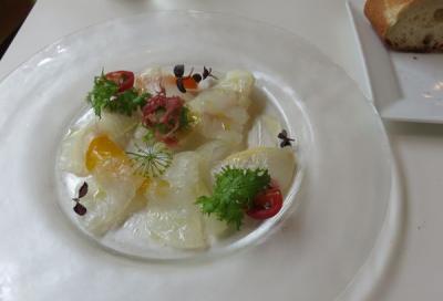 12時前なのにすでに満席。なかなかの人気店です。店内は白を基調とした造りで、肩肘を張らないで、フレンチを楽しめる感じ。