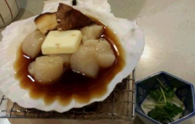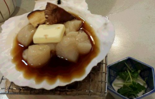 このほたては生でも食べられるものだから、半生に煮て、三つ葉かけると最高です。
