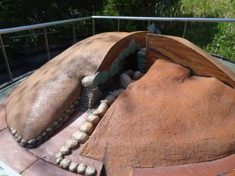 直径は32m。古墳の中には入れませんが、外から石棺も見ることができます。古墳の前には、古墳の模型も置かれていて、内部の状態が分かるようになっています。