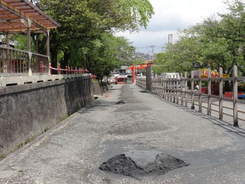 写真のように堀の上に城壁(と言うんでしょうか)が、再現されているだけです。