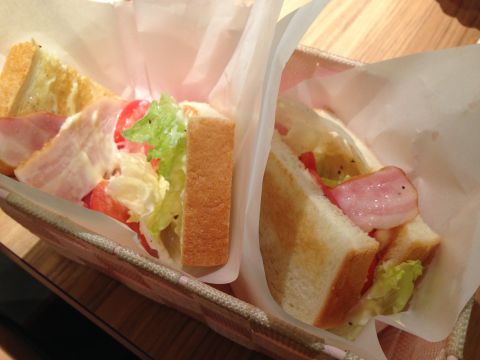「本日のコーヒー」の味は酸味が効いたもの。サンドイッチはその場で作る手作り感があるもの。大手チェーン店より気に入りました。