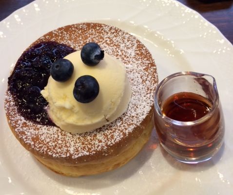 星野珈琲のスフレパンケーキ。ブルベリーがのってるものを注文しました。