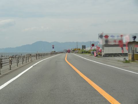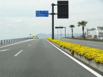 久能海岸の横を直線道路が沿っているので、片側に海、もう片側に山を見ながらドライブできます。