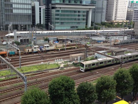 東京駅が間近に見えるのと、駅を発着する電車が見られるのが最大の売りです。