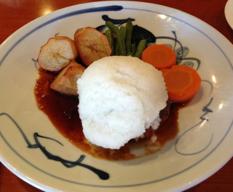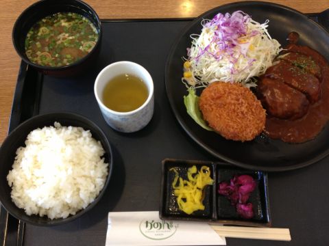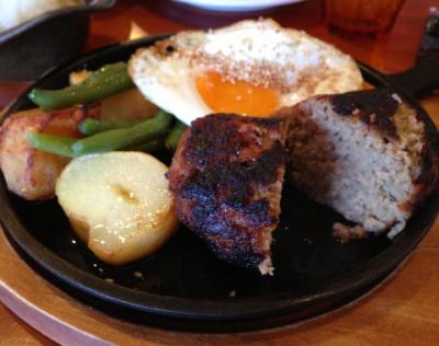 ハンバーグ自体の味は問題ないけど、和風タレが塩辛くて、皿の縁に食べ物を移動して、タレを切らないと食べられない塩辛さ。この日がたまたまだったことを願いたい。