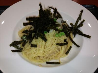 さっぱりしたパスタが食べたくて、ツナと大根おろしパスタを注文。海苔が乗っています。見た目はおいしそう。