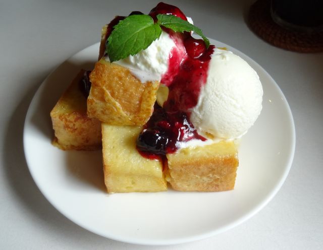 フレンチトーストにアイスクリームが載っているものがあったので つい追加で注文してしまった。これとコーヒーで、お茶するのもいいかも。
