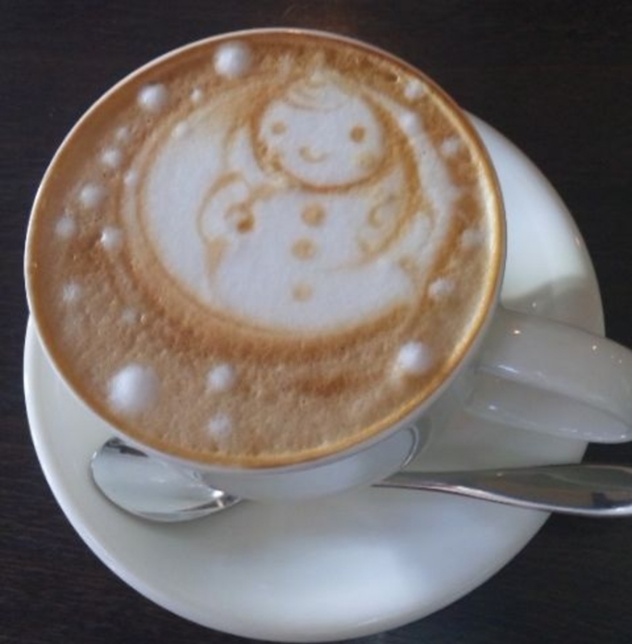 クリスマス前だったので、ラテのデコレーションも雪だるまでした。季節ごとに特徴を出しているようです。