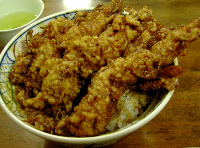 天婦羅を天汁にくぐらせ、完全ふにゃふにゃ状態。ツユもサラッと感が少ない。これが江戸風天丼なのかな?