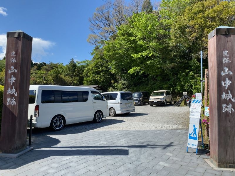 神社まで上りきると車止めがあって、その前に数台車を止めるスペースがありました。先客が1台。すれ違わなくて良かった~