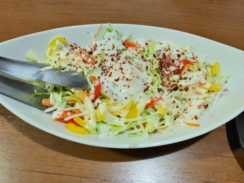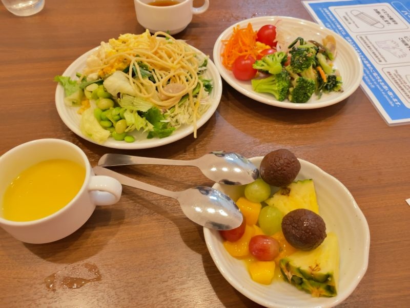 同じような値段で、サラダ・フルーツが食べ放題が付く店もありますが、こちらはカフェなので、そのようなシステムはありません。綺麗な景色を見ながら、軽く食事をするタイプです。