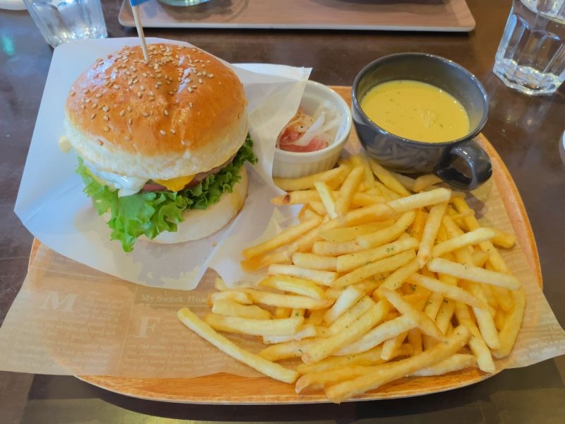 ハンバーガーのセットを注文。ハンバーガーはボリュームもあり、肉の味もしっかりしました。付け合わせのポテトは、揚げたてで塩味もちどよく美味しかったです。