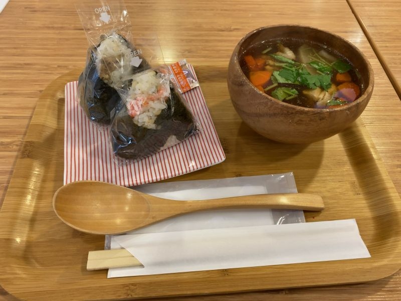 けんちん汁は写真に比べ具が少なかったのが残念でしたが許される範囲かな。温かい汁物とおむすぎがさっと食べられて良い店でした。- 旅行時期