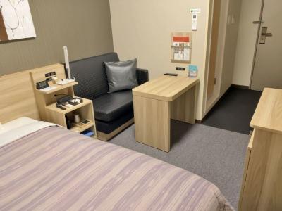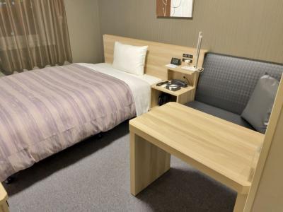 部屋に広めの椅子(ソファー)とテーブルがあるのが嬉しいですね。当然、枕元とテーブルにもコンセントとUSB端子がありました。- 旅行時期