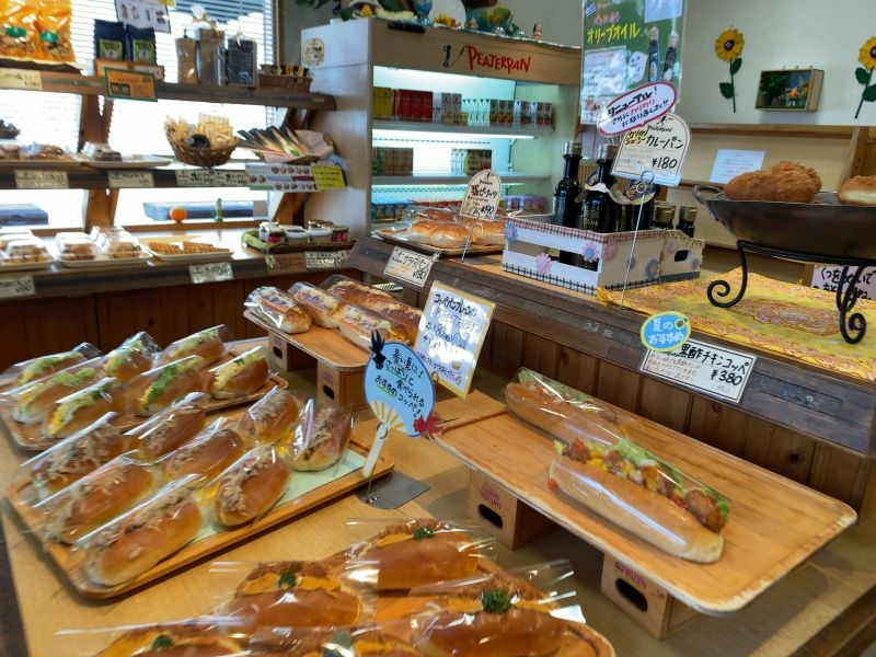 商品数も豊富。カレーパンと大きなソーセージが載ったパンを購入しました。