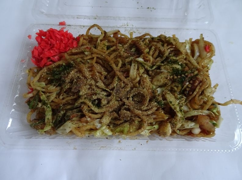 焼きそばのソースは単純なウスターではなく、少しアレンジしている感じ。肉かすも入ってスタンダードな富士宮焼きそばです。